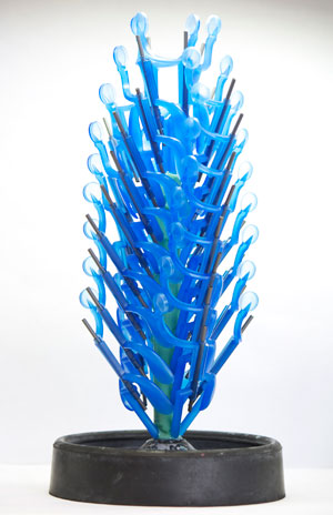 Anschließend werden diese Bäume mit einer Küvette ummantelt und mit einer gipsähnlichen Einbettmasse unter Vakuum übergossen.